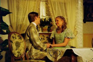 Alle drei Akte spielen in der Wohnstube des Kolonialwarenhändlers Cordes.