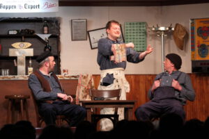 Da wirtschaften nun die drei Junggesellen Ole, Nils und Jens in der von ihrem Onkel geerbten Gaststätte herum. Mit Putzlappen und Feudel versuchen sie vergeblich, Schmutz und Unordnung Herr zu werden. Wie gut, dass dann die Postbotin Lisa die Idee hat, dass einer von den Dreien heiraten sollte. Die Idee kommt bei den Brüdern gut an – nur heiraten will keiner… – Bis Jens ein Wort zu viel riskiert.