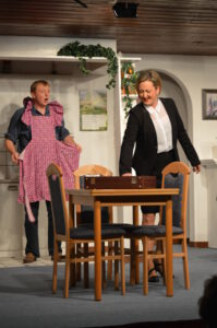 Cilli ist Hausfrau, ihr Mann Rudi leitet eine Seifenfabrik. Beide sind für ihre Aufgaben denkbar ungeeignet und entsprechend frustriert. So beschließen sie kurzerhand die Rollen zu tauschen. Fortan entdeckt Rudi die Freuden von Heim und Herd, während Cilli mit schmucken Sekretär auf Geschäftsreise geht. Der Tausch zeitigt unerwarteten Erfolg – bis die Rückkehr von Tochter Karin aus der Schweiz den geordneten Alltag auf den Kopf und die scheinbare klare Rollenverteilung – wieder – in Frage stellt…